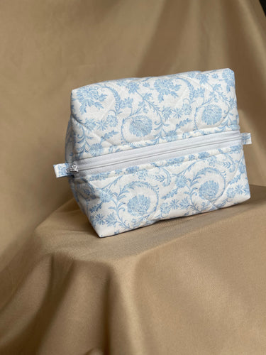 light blue florals makeup bag