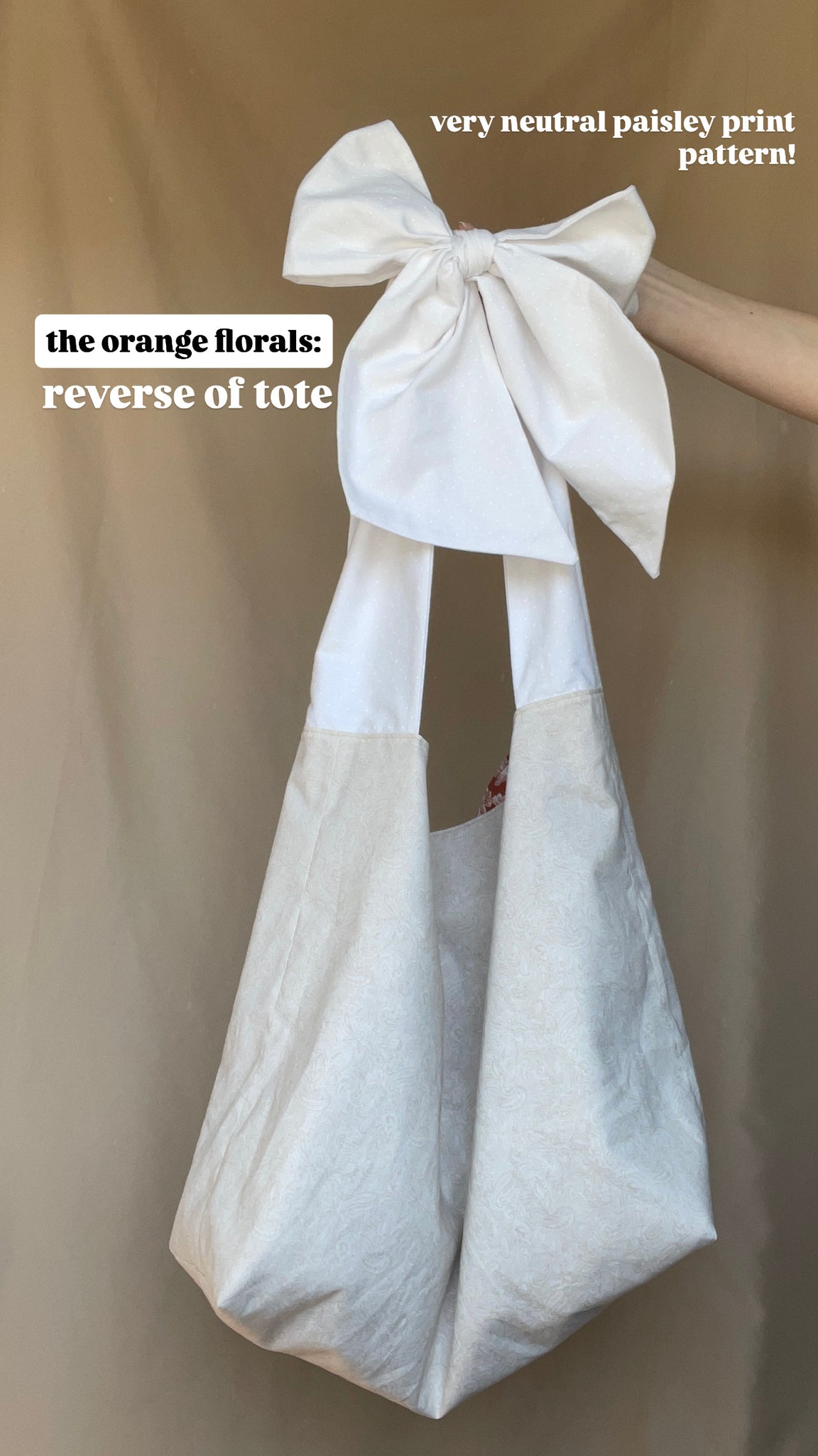 the perfect tote for fall! this reversible tote is made with 100% cotton fabric and has adjustable straps that are made to tie up into the cutest bow. the large size of this tote means it carries all your essentials or can be used to upgrade your reusable bag collection.