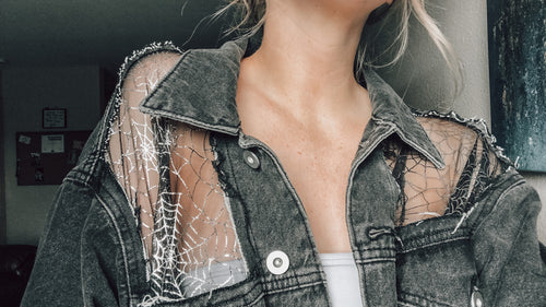Pink Boho Lace Medium Wash Jacket