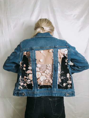 Soft Light Wash Jacket with Pink Sequin Floral